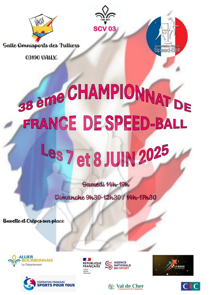 Le Club de SPEEDBALL de VAUX organise le 38 -ème championnat de France de ce sport à la salle omnisport des TRILLIERS à VAUX. Ce sport créé en Egypte par un moniteur de tennis pour éviter à son fils qu’il entraînait d’aller chercher les balles perdues et garder la rapidité et les réflexes des coups droits et des revers.